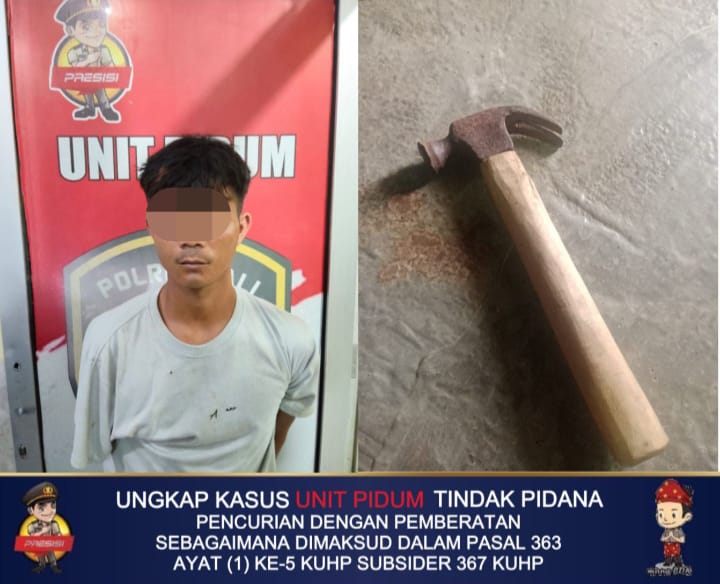 Dari tangan pelaku,Polisi menyita satu buah palu bergagang kayu yang digunakan dalam aksinya.