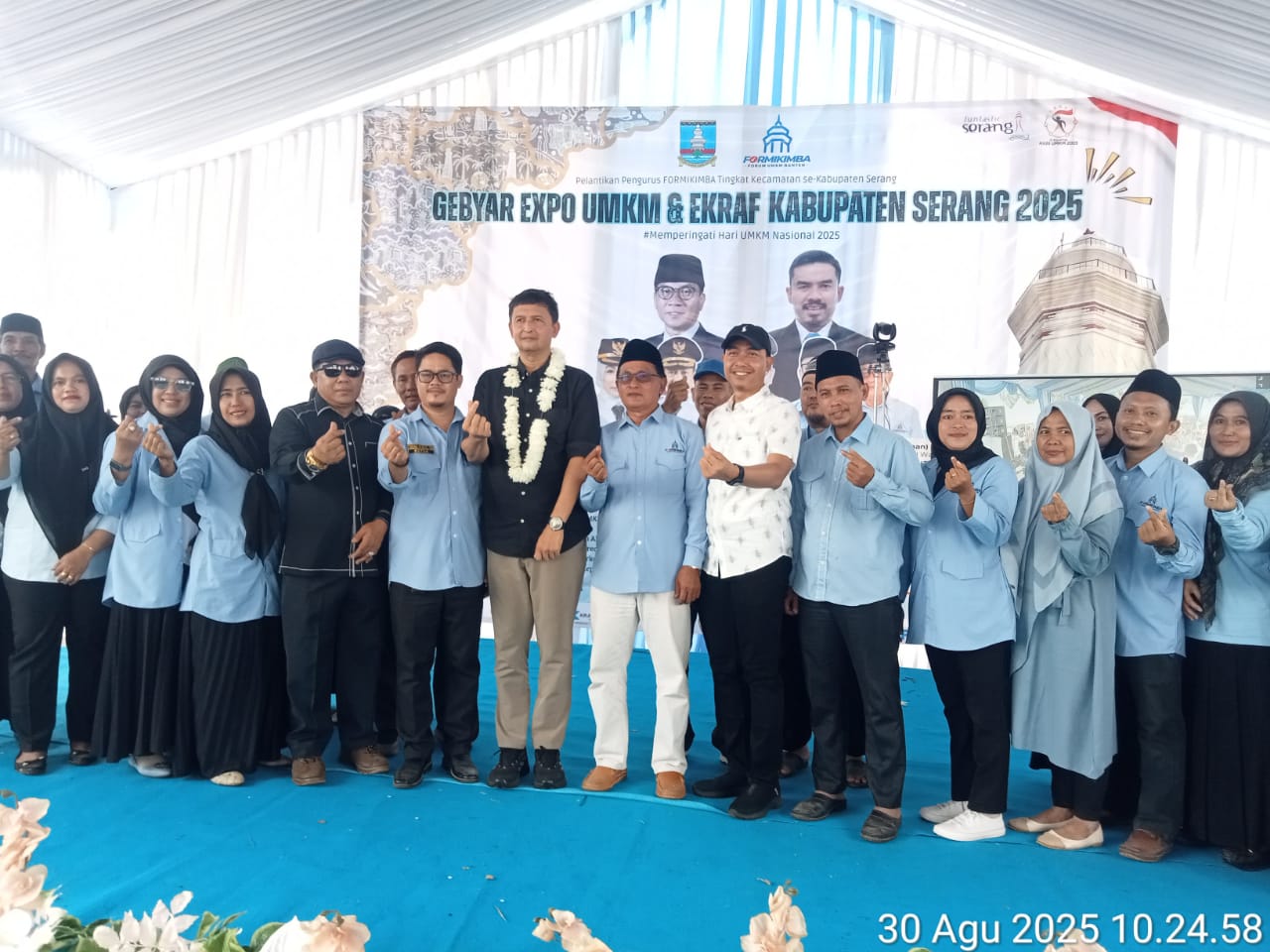 Serang//Tintaindonesia.my.id,- Dalam rangka memperingati hari UMKM Nasional tahun 2025 para pengusaha Usaha Mikro, Kecil, dan Menengah (UMKM) binaan Formikimba Kabupaten Serang menyelenggarakan Gebyar Expo UMKM dan Ekraf serta dirangkaikan dengan pelantikan pengurus Formikimba Kecamatan se-Kabupaten Serang.