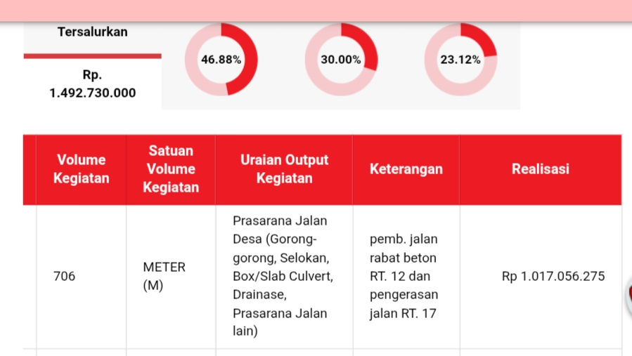 Menurut informasi tersebut, kegiatan pembangunan di Rt. 12 dan di Rt.17 ini menelan dana hingga Rp 1.017.056.275.