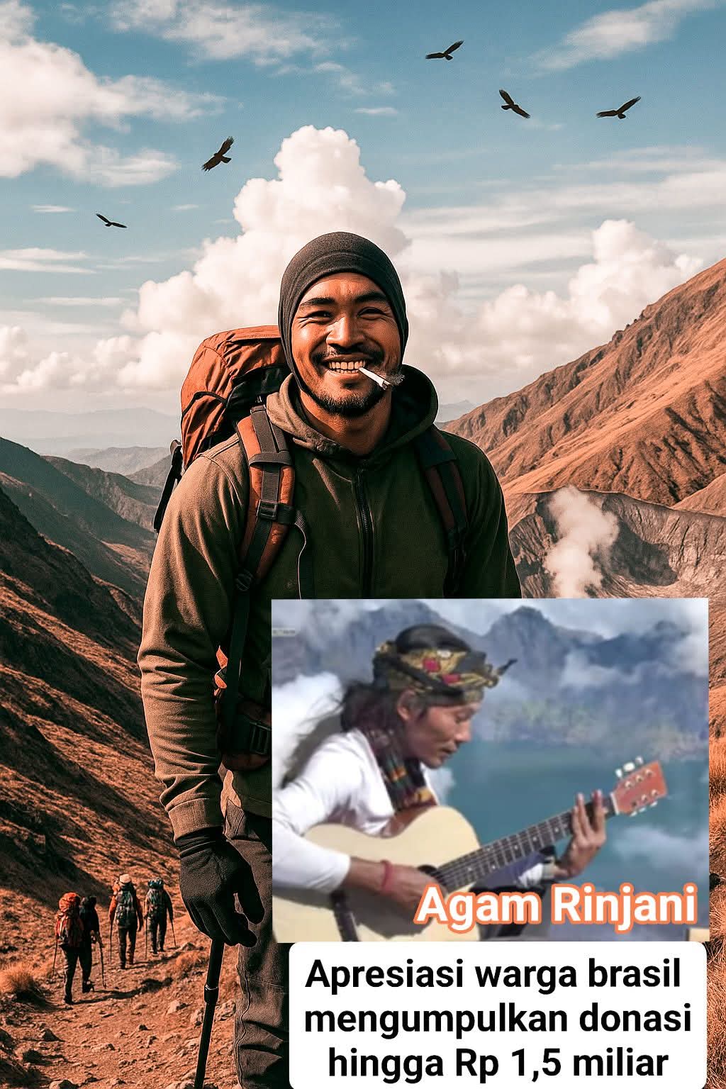 Sosok seorang relawan SAR yang mengevakuasi jenazah pendaki Brasil, Juliana Marins, yang terjatuh ke jurang Gunung Rinjani. Juliana ditemukan tewas di jurang dengan kedalaman 600 meter pada Selasa (24/6/2025) yang bernama Abdul Haris Agam alias Agam Rinjani.