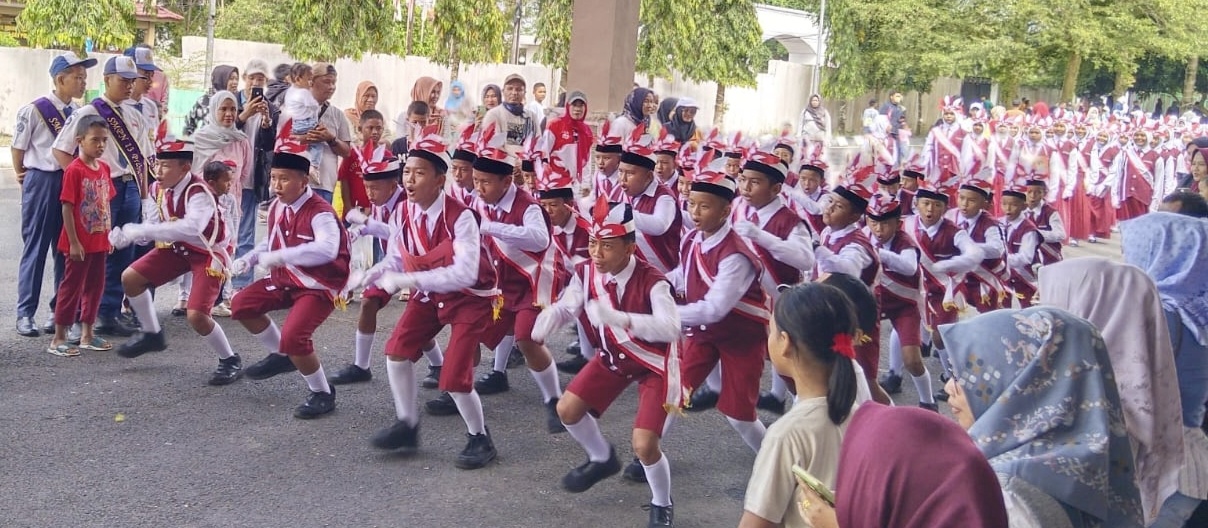 Lomba gerak jalan, dalam rangka memeriahkan peringatan Hari Ulang Tahun (HUT) Ke-80 Kemerdekaan Republik Indonesia, diikuti oleh ratusan regu dari berbagai sekolah dasar, masing-masing sekolah menampilkan siswa terbaiknya.