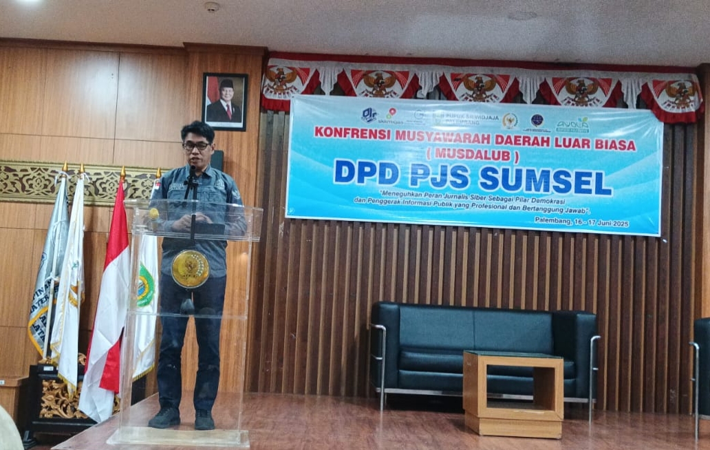 Palembang, Tintaindonesia .my.id- 16 Juni 2025 — Konferensi Musyawarah Daerah Luar Biasa (Musdalub) Dewan Pimpinan Daerah (DPD) Perkumpulan Jurnalis Siber (PJS) Sumatera Selatan resmi digelar di Gedung Dewan Perwakilan Daerah Republik Indonesia Provinsi Sumatera Selatan, Senin (16/6). Kegiatan ini bertujuan memperkuat peran jurnalis siber sebagai pilar demokrasi dan penggerak informasi publik yang profesional dan bertanggung jawab.