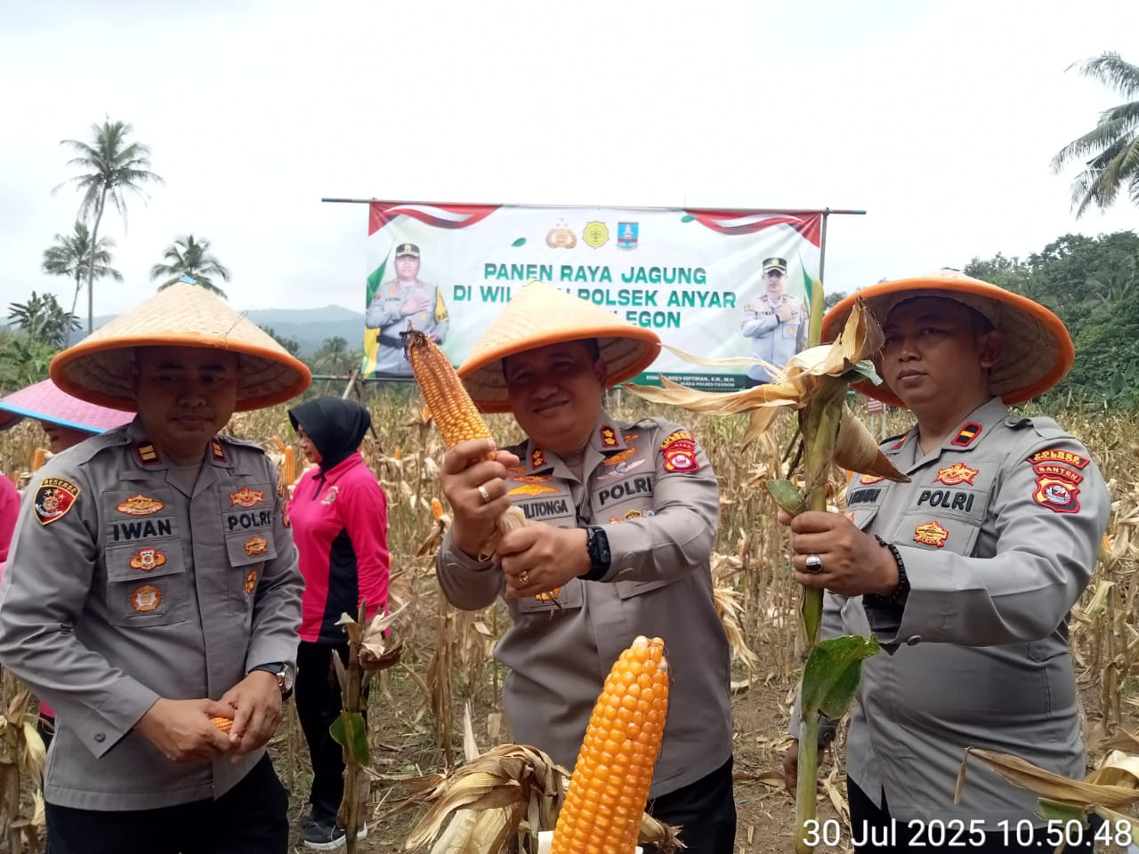 Kapolres Cilegon AKBP Dr. MARTUA RAJA TARIPAR LAUT SILITONGA, S.H., S.I.K., M.Si., yang di dampingi langsung Kapolsek Anyer Iptu H. IWAN SOFIYAN, S.E., M.M., dalam rangka Panen Raya Jagung di Kampung Cidohok Desa Gerogal Indah Kecamatan Anyer beserta jajaran. Turut hadir Camat Anyer H. IMRON RUHYADI, S.STP., M.Si., Danramil Anyer Kapten INF JAROT PURNOMO.