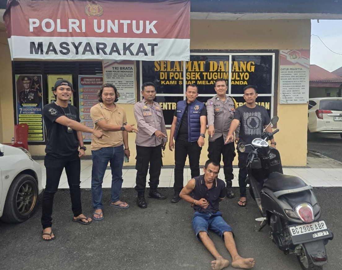 AA ditangkap diduga mencuri sepeda motor Honda Scoopy warna hitam coklat nopol BG 2906 BP, milik, MA (38), yang sedang terparkir di salah satu toko accecoriies di Desa C Nawangsasi, Kecamatan Tugumulyo, Kabupaten Mura, sekitar pukul 14.30 WIB, Sabtu (5/4/2025).