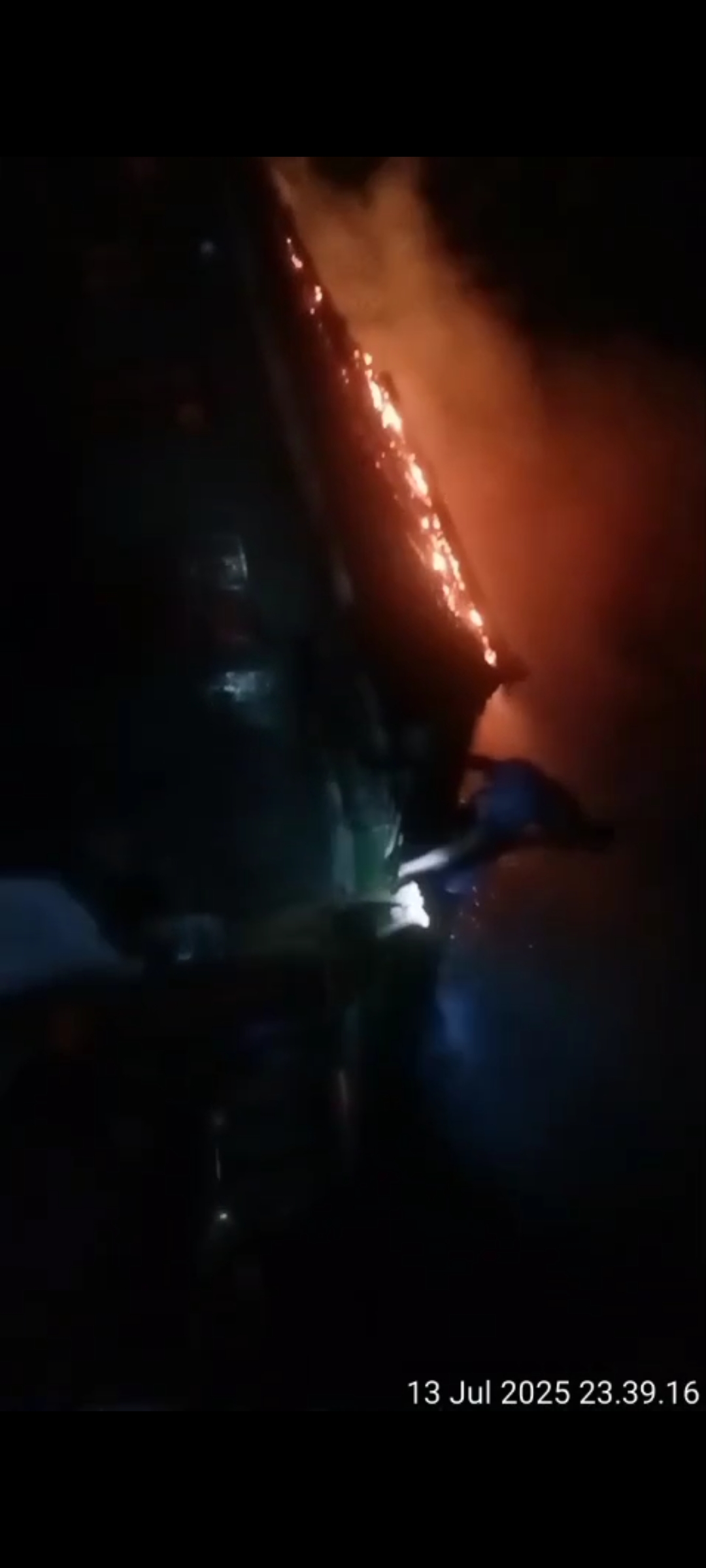 Korban berteriak membangunkan anak-anak dengan kondisi panik dengan teriakan yang begitu kencang meminta tolong kepada warga setempat, dan warga terbangun langsung berdatangan membantu untuk memadamkan kobaran api yang begitu besar.