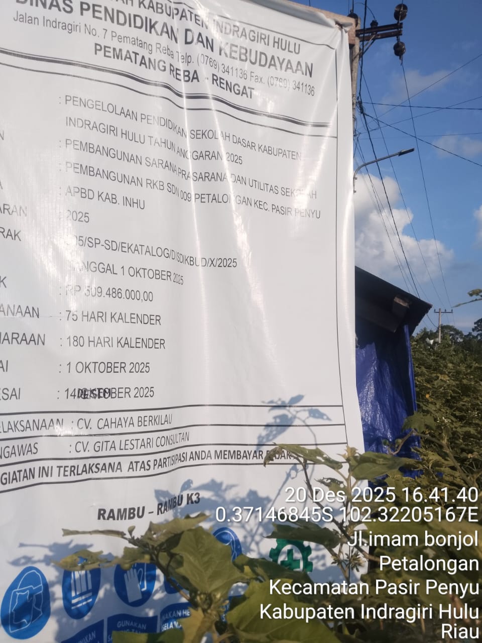 Proyek pembangunan Ruang Kelas Baru (RKB) di SD Negeri 009 Petalongan, Kecamatan Pasir Penyu, Kabupaten Indragiri Hulu, Provinsi Riau, dipastikan mendapat perpanjangan waktu penyelesaian meski masa kontrak awal telah berakhir.